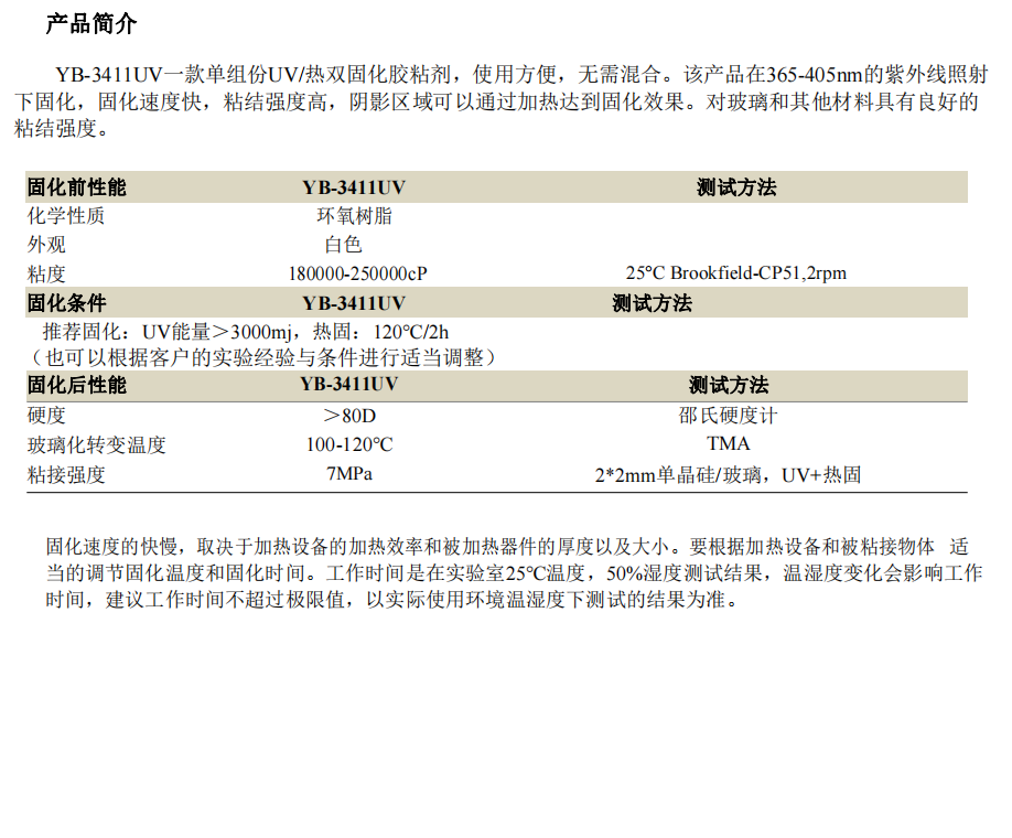 UV热固胶 YB-3411UV「查看详情」