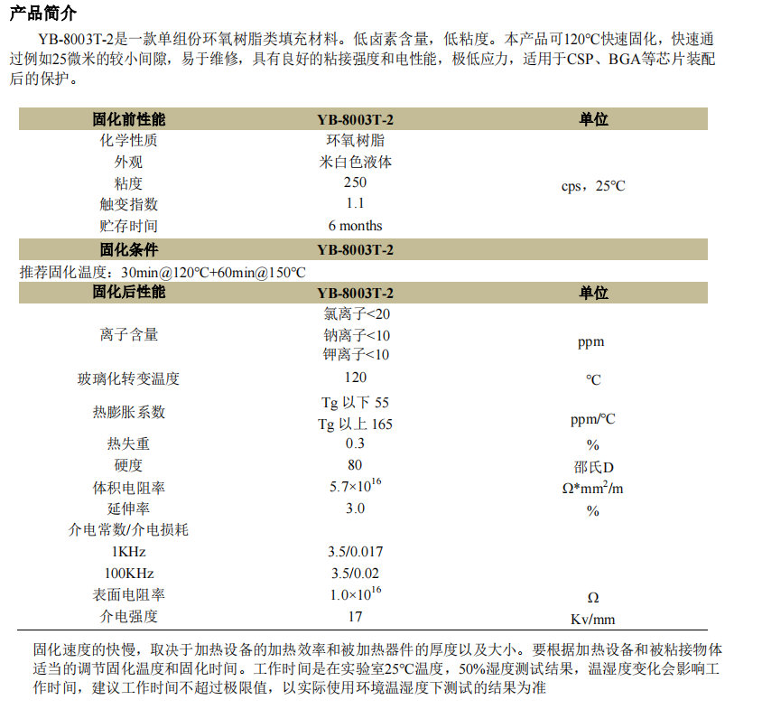 环氧底部填充胶 YB-8003T-2「查看详情」