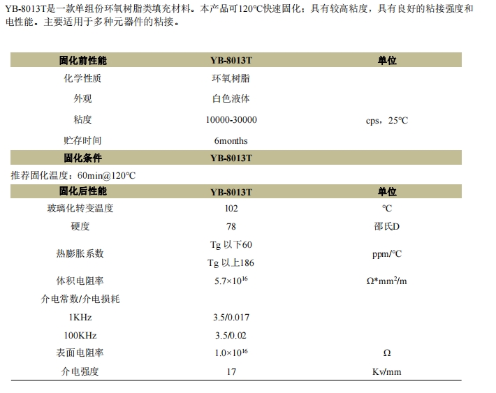 环氧底部填充胶 YB-8013T「查看详情」